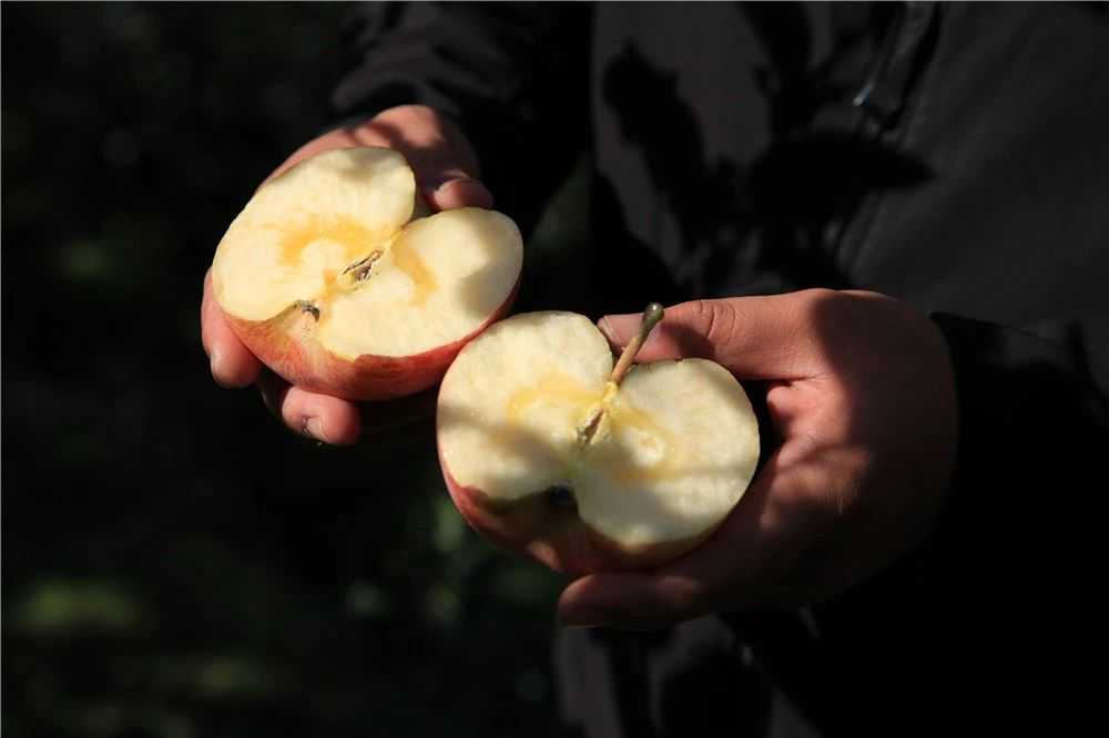 山东烟台苹果一般在十一以后就开始采摘上市,而守拙园自然农场的第一批苹果是立冬前后(11月上旬)采收,取名“冬后”;第二批在小雪前后(11月下旬)采收,取名“雪后”。业主丛东日介绍,十月份正是苹果增甜的黄金时期,没有到真正的成熟期。而受冻后的苹果会把淀粉转化成糖,使得苹果更甜。