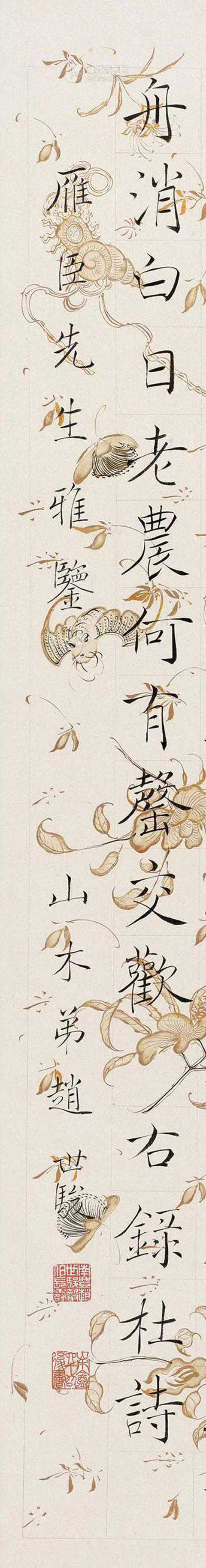 赵世骏,字声伯,号山木,江西南丰人,久居在北京,为陈宝琛弟子,与清书法家鲁琪光齐名。清光绪十一年拔贡,官内阁中书,擅长书法,工寸楷,亦善画花卉,初学钟王,晚学褚遂良,所书几可乱真。