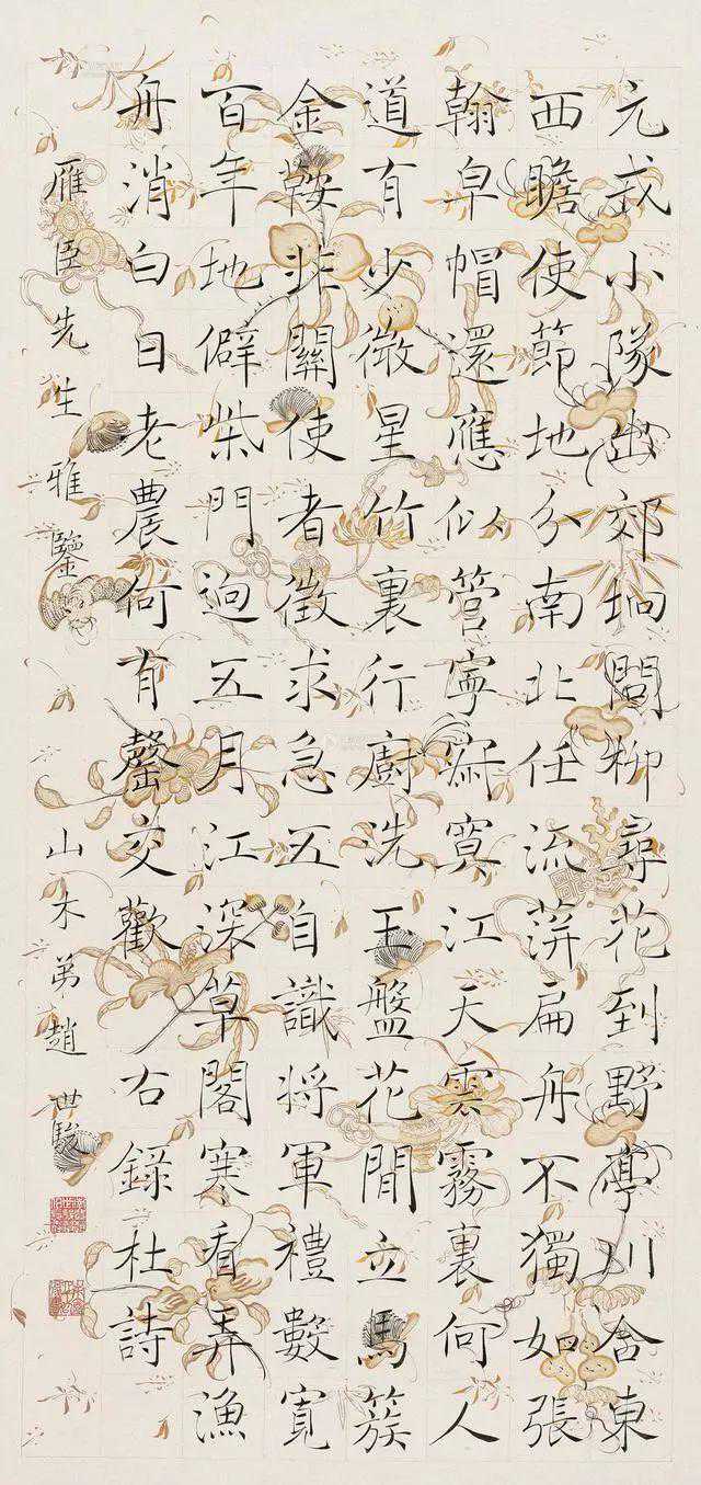 释文:元戎小队出郊垧,问柳寻花到野亭。川合东西瞻使节,地分南北任流萍。扁舟不独如张翰,皂帽还应似管宁。寂寞江天云雾里,何人道有少微星。竹里行厨洗玉盘,花间立马簇金鞍。非关使者征求急,自识将军礼数宽。百年地辟柴门迥,五月江深草阁寒。看弄渔舟消白日,老农何有罄交欢。