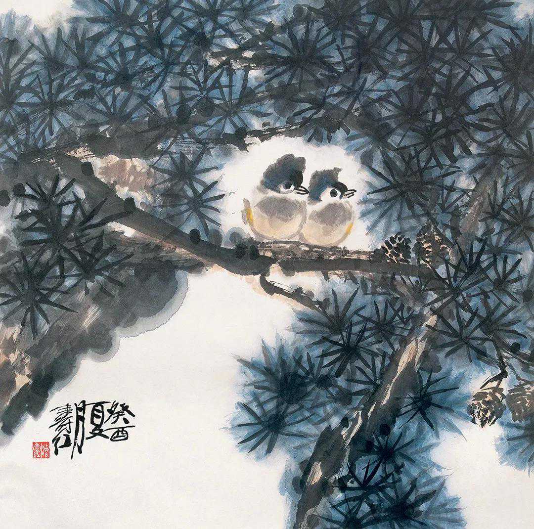 不惑之年,于中央工艺美术学院任教,理论思考愈深,写意花鸟益精,更融现代结构于传统笔墨之中,画格风姿益独,人皆言有“丈夫气”,海粟老有“女儿笔涌壮夫诗”之评语。观其作,如阅铁马秋风,豪笔壮气,浑朴苍拙,浓丽沉稳,真大手笔。其精品,如《江山多娇》,花鸟山水一体,铁铸江山映灼灼杜鹃,悬之天安门城楼中央,诚新中国壮美之象征。又如《北海》《待月》,墨韵苍苍,灵光闪闪,巧空鱼鸟,不似之似,乃写意精神之当代图式。再如《晚香玉》者,紫罗蓝衬如玉山花,皎洁而充满生机,可视为女画家之自我写照也!