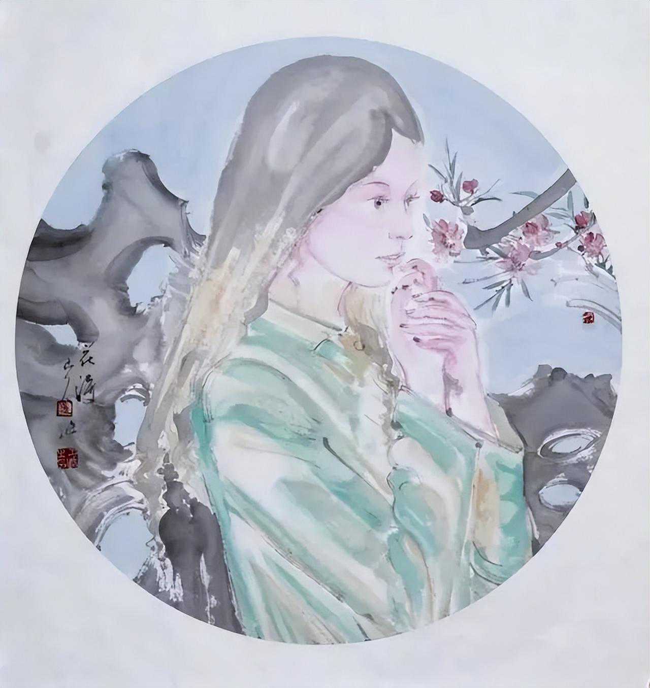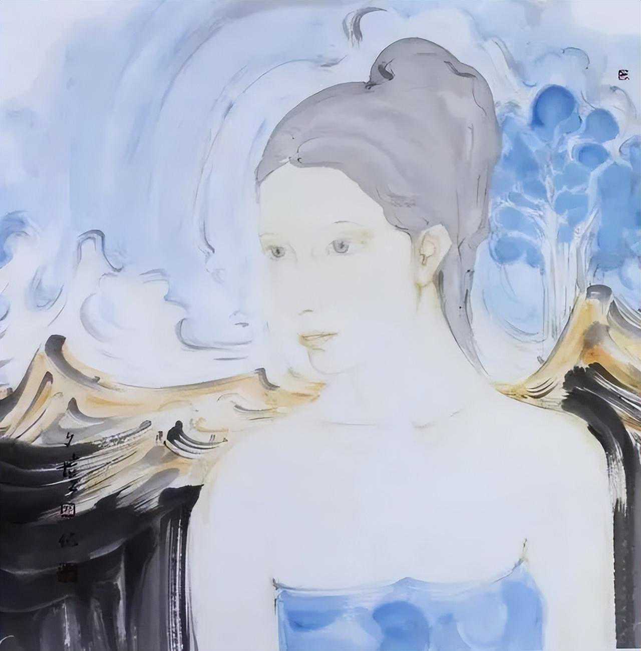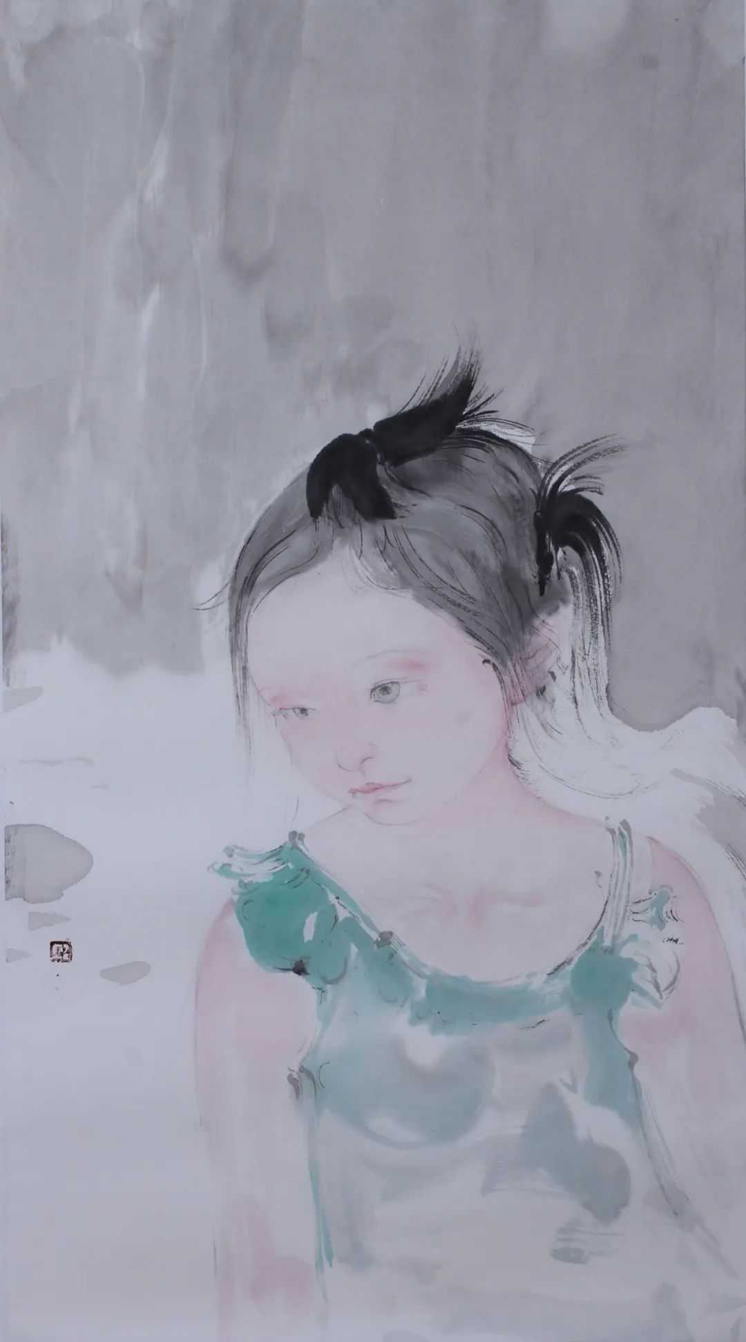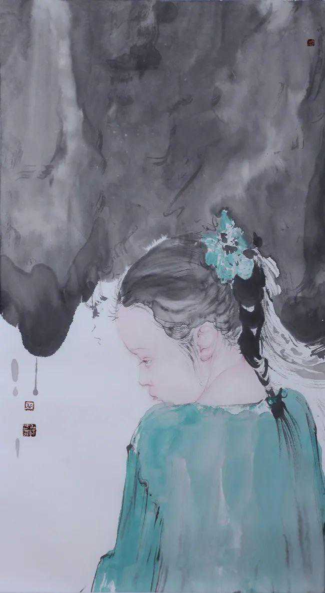 孙夕恺在人物水墨中很注重刻画内心情感,它以所绘人物的眼神的变化——喜怒哀愁,来塑造人的情感、表现人的性情。生活中眼睛是心灵的窗口,绘画作品莫不如此。形、神的审美意义直接在人的眼中体现。孙夕恺在人物形神关系的艺术处理上,透过对人物形象的眼神把握——或真诚、或迷茫、或失落、或哀怨……努力在审美意象中体验笔墨的情趣和方向性。