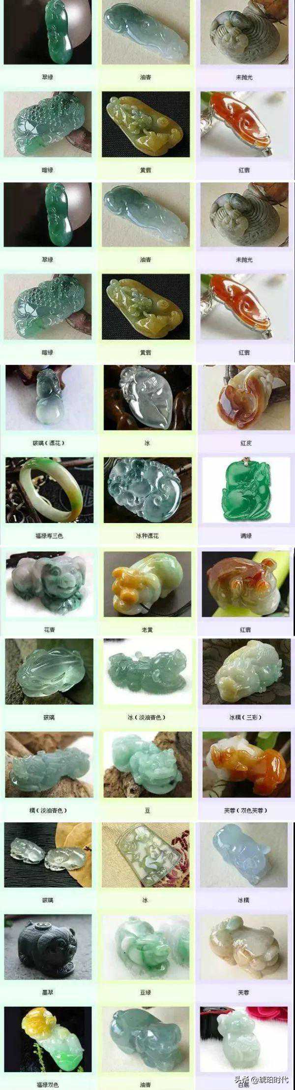 翡翠在所有宝石中颜色最丰富,红、黄、蓝、绿、白、紫、黑……应有尽有,其中最有价值的是绿色