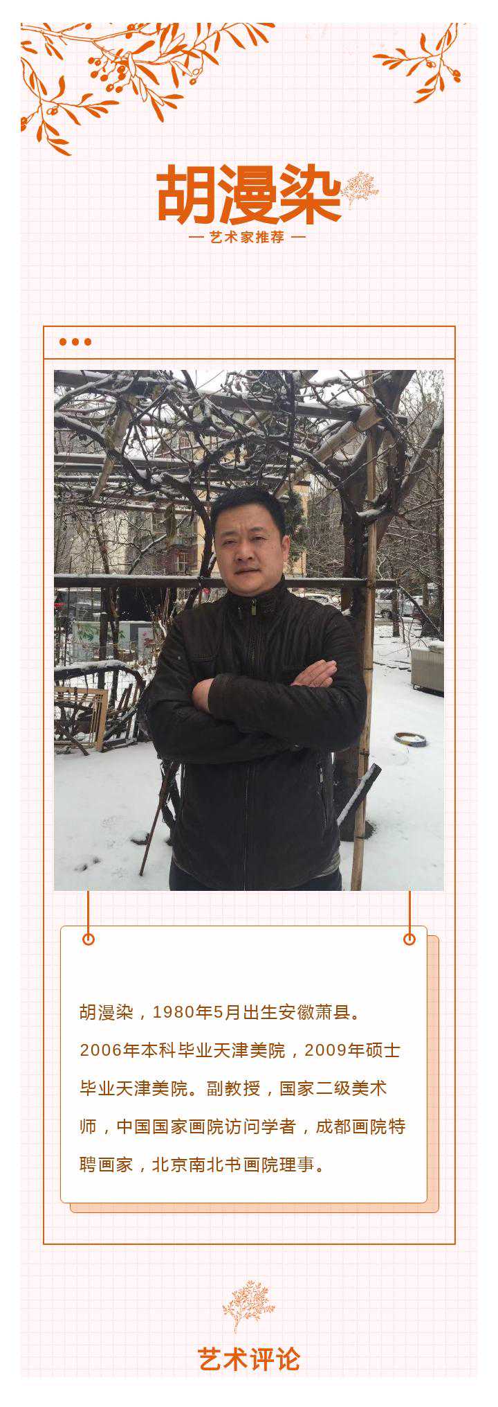 胡君漫染,安徽萧县人,己亥年秋与余相识于京华,其人沉毅质朴,有古君子之风。谈书论艺,卓然不凡。早年负笈于津门,专攻水墨人物。因其才盛,遂得师生感佩。毕业后就职于大连一高校,后因家事,定居于津门。漫染之......