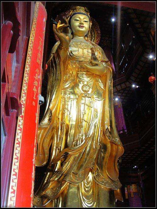 17、苏州重元寺观音阁观音像,为目前国内最高大、铜胎贴金的室内观音像,重达80吨、高为33米。观音面庞圆润丰满,端庄妙丽,左手托净瓶,右手持杨枝,身披锦袍跣足。