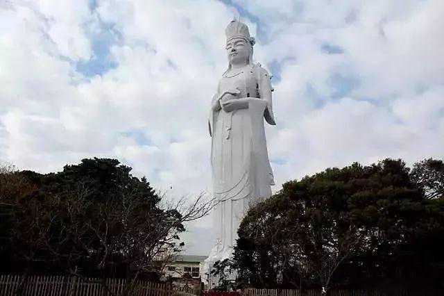 12、广东佛山西樵山南海观音,于1998年建成,通高61.9米,是世界上最高的观音坐像。圣像双足交盘趺坐在莲花座上,头戴宝珠天冠,身披天衣,着罗裙,弯眉朱唇,眼似双星,面部亲切慈祥,俯视南海大地,祝愿人间安乐祥和。