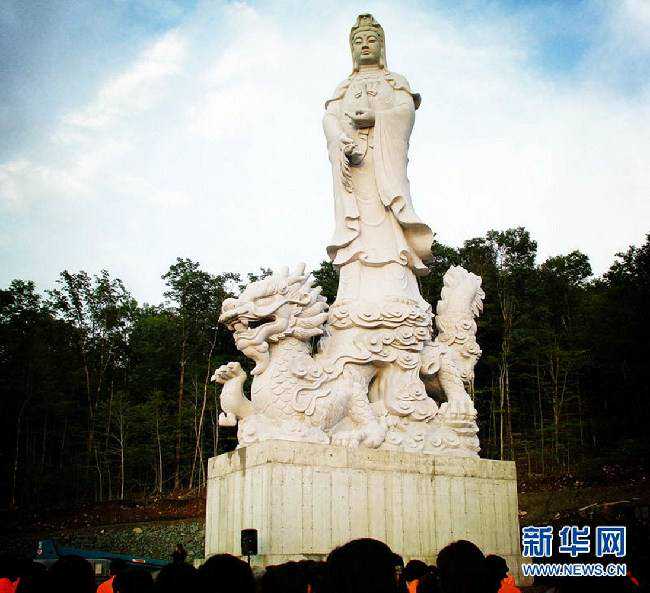 22、加拿大最高观音菩萨雕像,位于魁北克省三宝山寺,观音菩萨骑龙雕像高17米、宽11米,重360吨,是由中国高级工艺美术师詹益盛在中国汕头创作完成的,汇集多个中国文化元素石雕观音,已经成为当地标志性艺术雕塑。