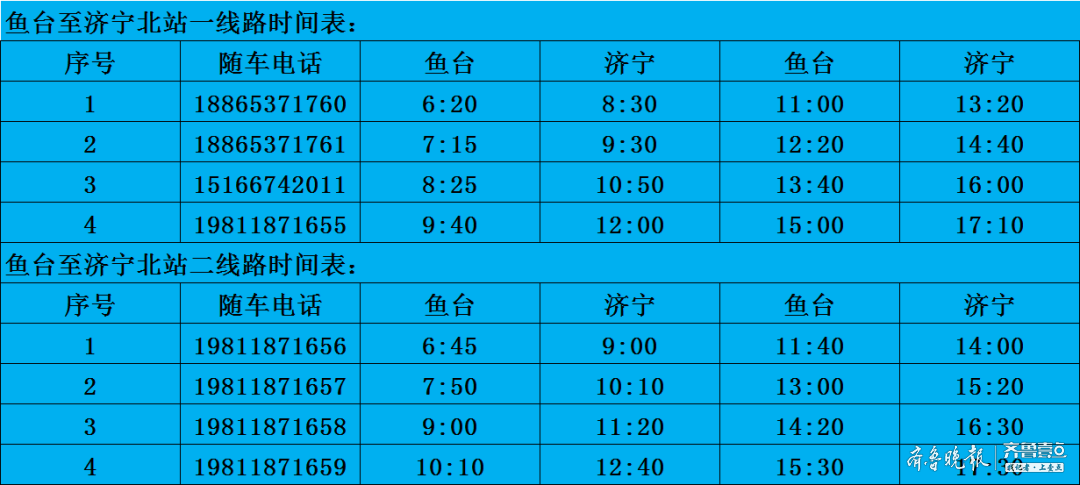 17日,济宁市鱼台汽车站发布线路班车最新时刻表,具体如下: