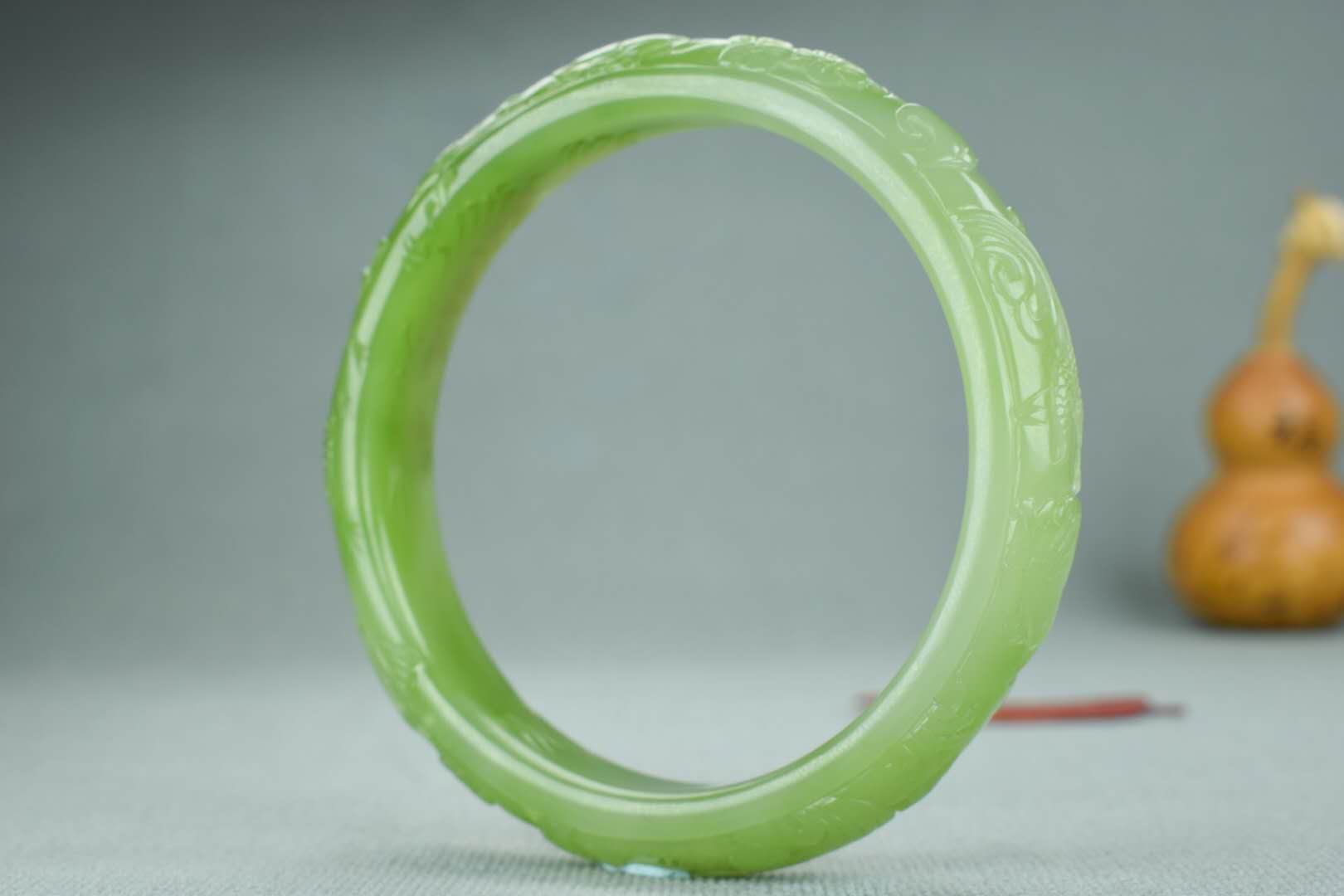因为碧玉手镯外形轮廓是对称的,一旦有不对称的情况时,必然会影响它的美观性。所以不同的时代,和田玉碧玉手镯都会不断的发展着,内平外圆,接近正圆等等,一般以它的端庄和规整性来显示碧玉手镯的珍贵价值。