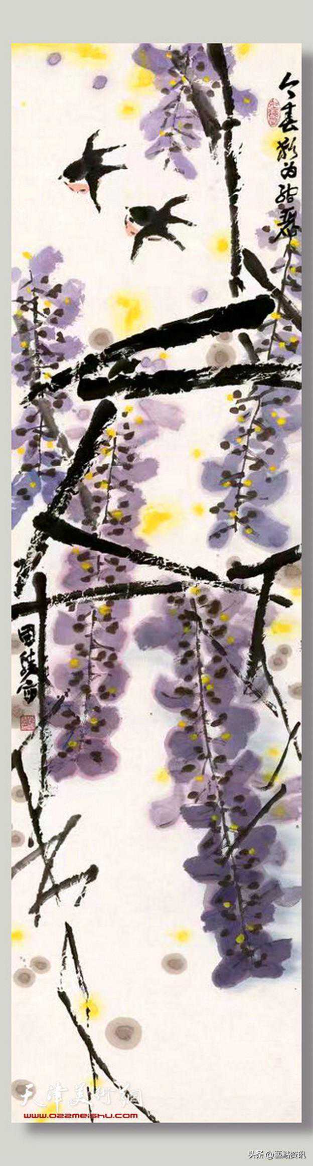 刘国胜:我十六岁开始学画,在师范学校师从马翰章等老师,学习基础绘画。毕业后成为一名美术教师,辅导孩子们少儿国画、素描等,还出版过一本《少儿艺校国画课稿》技法书。48岁时师从尹连城学习书法,并将书法艺术笔法之精妙借鉴运用到绘画创作之中,特别是大写意的绘画创作中,其线条的运用和书法是相通的。书法与水墨画同源,都是笔墨功夫,二者的笔法、墨法、布局、结构、浓淡运用均有互通之处。孙其峰老先生就有“国画的一半是书法”的论述,我在书法方面是下了功夫的,以书法入画法,绘画创作中自然而然蕴含书法的劲道和笔锋,画中线条质量是不同的,也成为了一种风格。