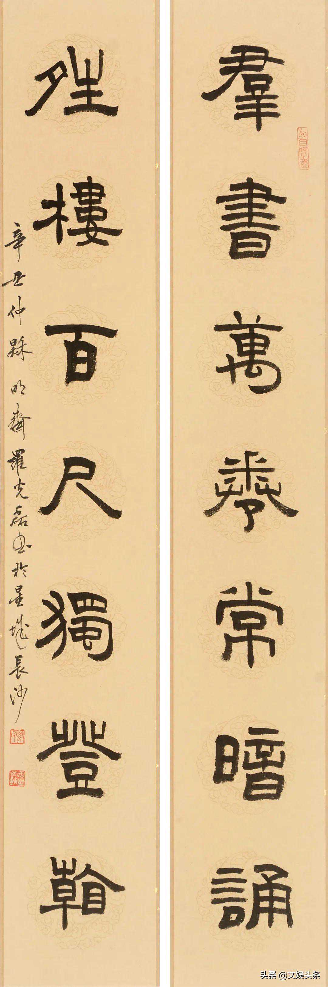 群书晴楼隶书七言联