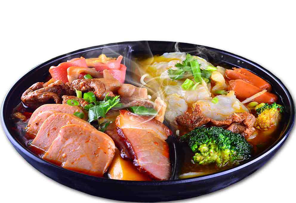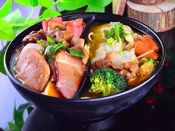 ⑶白鲜汤一般采用骨头少而糯米和淮山药较多的方法炖的色泽发白鲜味较足的鲜汤,在制作时鲜汤一般不加香料;底料:主要突出麻辣味而鲜香味较轻。