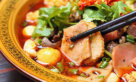 冒菜的涮菜汤制作:菜籽油1.5斤入锅烧至六成热时,放入豆瓣酱200克熬制五分钟,放入花椒50克,豆豉20克(剁碎),姜末15克,冰糖10克,牛油300克,熬制出香味,放入二十斤高汤,放入酒酿汁50克,黄酒10克,胡椒粉5克,盐(根据自己当地的口味放入)味精鸡精各10克,烧开过滤干净,既成冒菜卤(涮锅)。