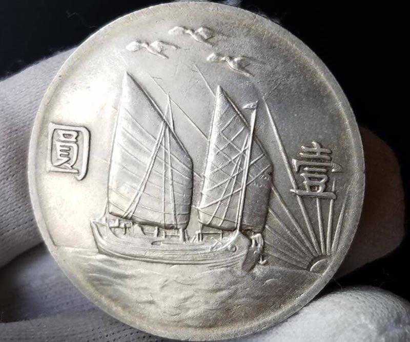 对于泉友们来说,在各种银元的品类里面,船洋的知名度有目共睹,这种银币的正面是孙中山的侧脸,背面是一艘帆船,所以被称为船洋。而三鸟币则是船洋中的特殊版本,铸造发行于1933年3月,由当时的中央造币厂铸造发行,这种银元重26克左右,正面与普通的船洋基本相同,最大的特征是背面的双栀帆船上有三只飞翔的海鸥,同时右侧有象征着光明的旭日东升,左右分别雕刻着象征着面额的“壹圆”二字。