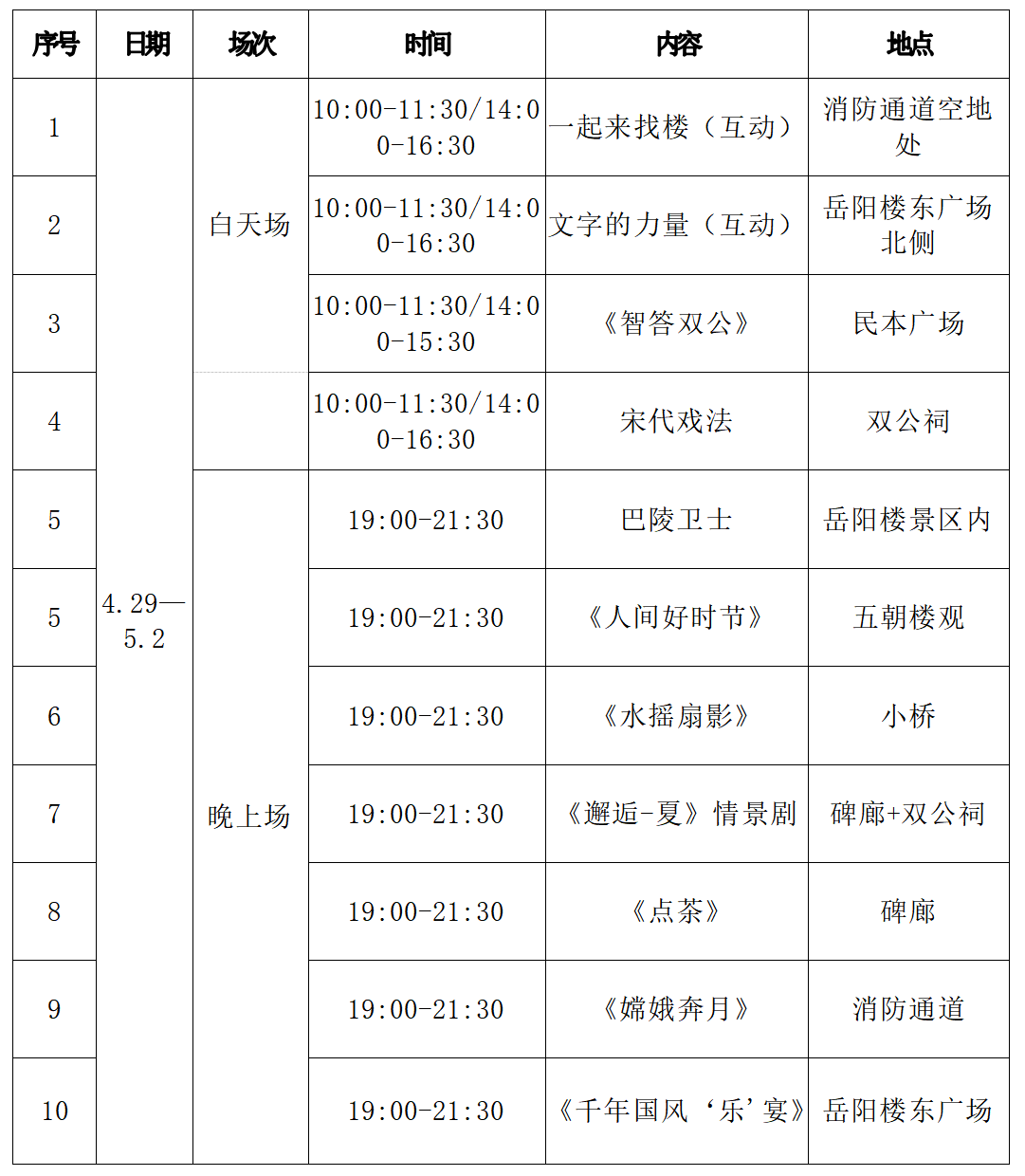 4月29日-5月2日,在岳阳楼景区,岳阳楼的千年文化将通过多种形式展现出来,打造“好玩”“有趣”“有看头”“互动强”的五一游玩盛宴。