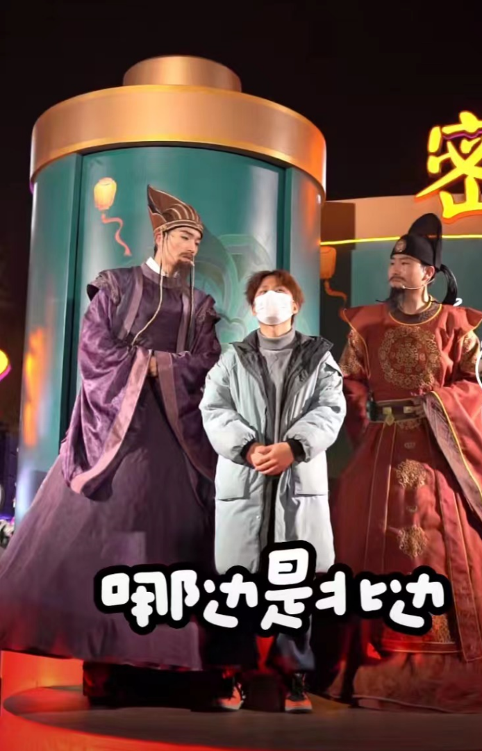 内容呈现:身着宋代服饰的表演者在双公祠门口进行戏法表演。