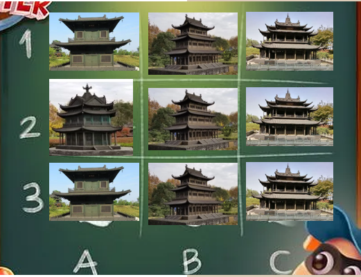 内容呈现:以一起来找茬这个游戏为灵感,将唐宋元明清五个朝代的岳阳楼等比例缩小还原在现场,中间加入其他楼阁,如黄鹤楼、滕王阁等,在规定时间内,游客需从众多楼阁当中,按照顺序找出五个朝代的岳阳楼,即可获取纪念小礼品一份,让游客更深刻的记住不同朝代的岳阳楼的模样。