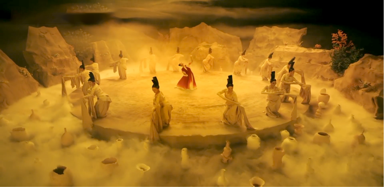 内容呈现:共在人间说天上,不知天上忆人间。舞者化身嫦娥翩翩起舞,飘动的衣袂随着清秀窈窕的身姿,散发出清雅气息。