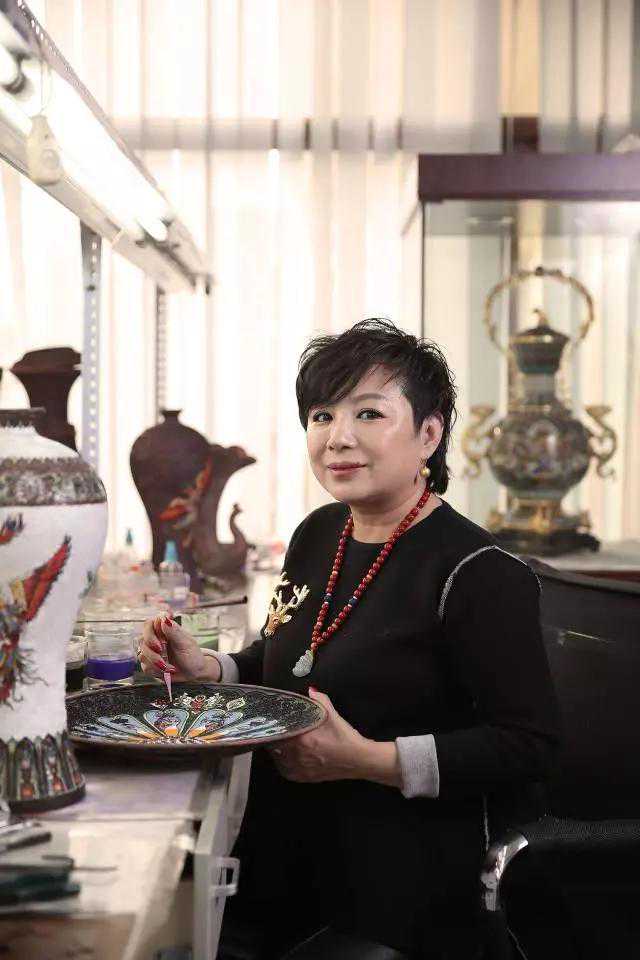 ↑2016年11月10日,“张氏景泰蓝”艺徒张颖在点蓝工作台前。