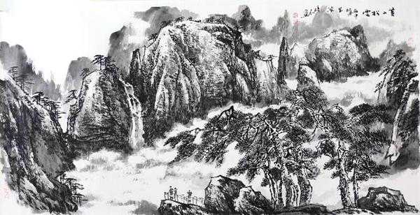 戴培仁山水曾取法宋元,服膺“二石”,心仪李可染、黄宾虹、陆俨少却不依样画葫芦,而是在直面现实山水的写生实践中,捕捉灵感,整合传统,画出感受。在这一过程中,传统皴法的程式消失了,代之的则是对传统笔墨那些表现丘壑、树石、云水中。他画《苍山如海》的浑厚凝重,他画《黄山云海》的烟云供养,这种笔墨体悟通过他个性的选择,被强化地运用到实境,感受到的是大言大美。