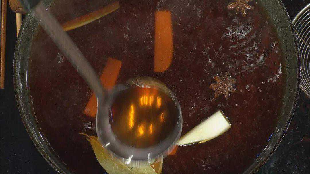 步骤3:将煮好的肉捞出,放入盘子中,取另一个盘子盖在肉上,再压上一个重物,将肉压制2个小时;