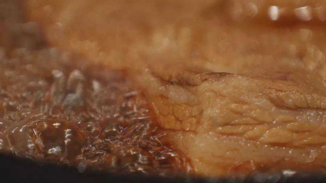 步骤2:炒糖色:锅中少油,开大火,加入糖,待糖融化后转小火,变色后,再次转大火,加入热水,放入八角、香叶、葱姜和料酒,放入五花肉,煮至半小时;