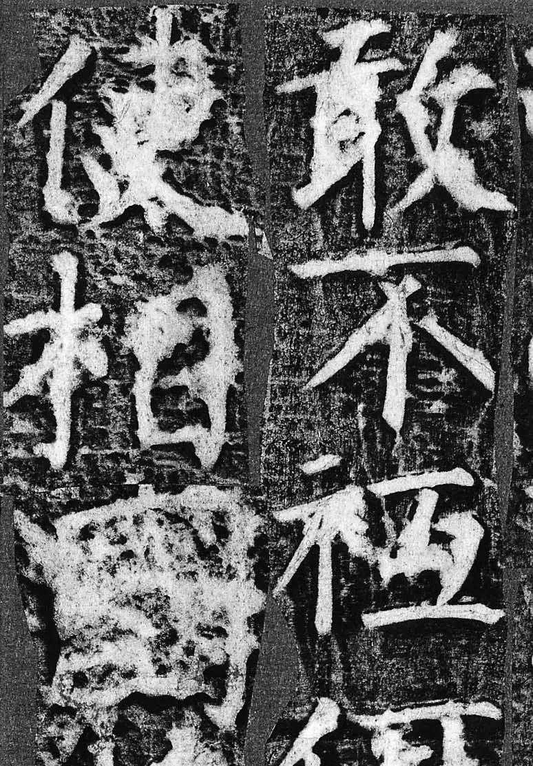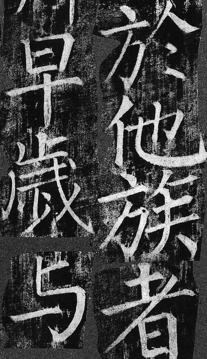 明拓本“並書”之“書”字完好,“有馬千駟”之“馬”字,“勳勞”之“勳”字,“守節安卑”之“卑”字,“異於他族”之“於”字,皆完好,較乾嘉時拓多數十字。