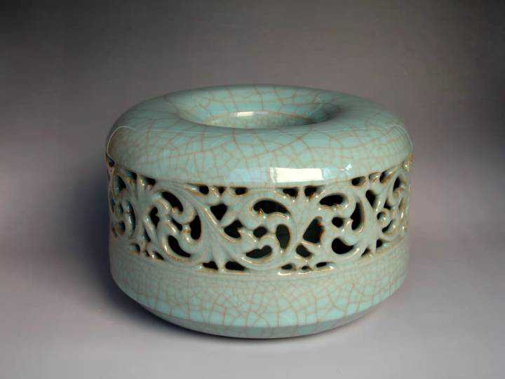 金国荣,师从中国工艺美术大师郭琳山和嵇锡贵,从艺40余年,在传承的基础上善于创新,遵古法而不拘泥于古法,创新意而又不失古韵,已逐步形成了自己的独特风格。作品大气端庄,格调高雅,制作技法多变,薄胎厚釉,浑厚莹彻,巧妙地利用器物表层釉面的自然开片,形成趣味无穷的装饰效果。