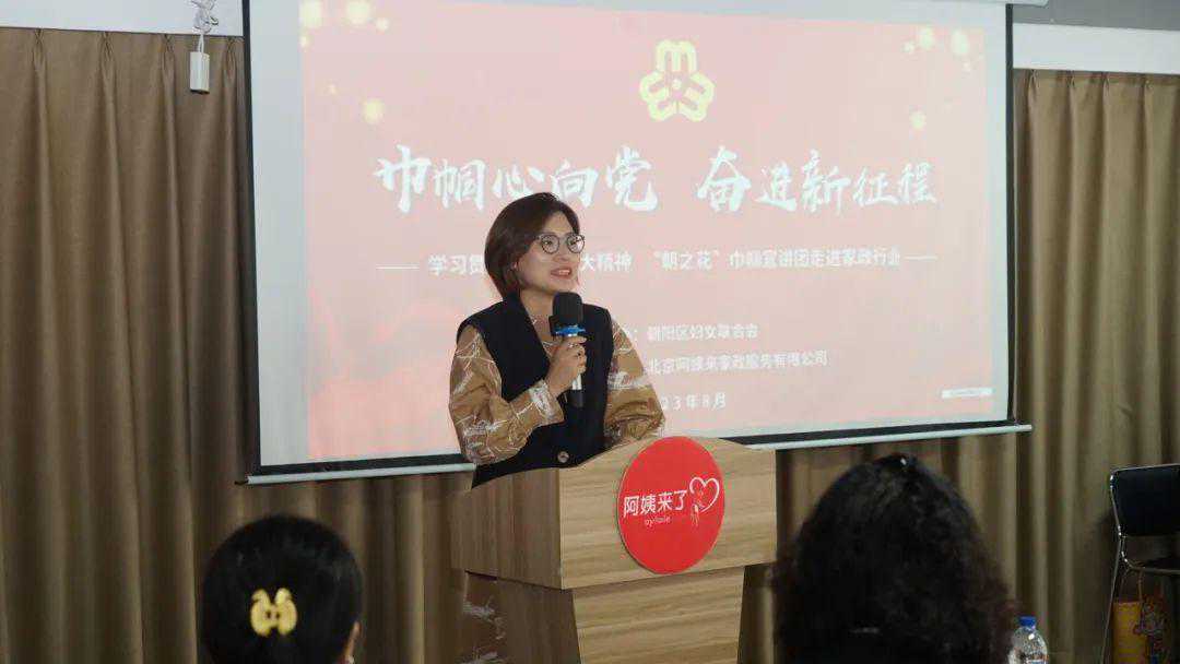 8月13日,为表彰先进,树立典型,阿姨来了举行2023年第二季度家政员评优创先表彰大会。阿姨来了副总经理徐化愚、北京分公司总经理李莉萍,以及近百位优秀家政员代表参加会议。本次大会特别邀请了4名“朝之花”巾帼宣讲团成员结合自身成长和岗位经历,讲述“巾帼故事”,传播“巾帼之声”,进一步激励广大家政员群体担当作为、奋发向上。