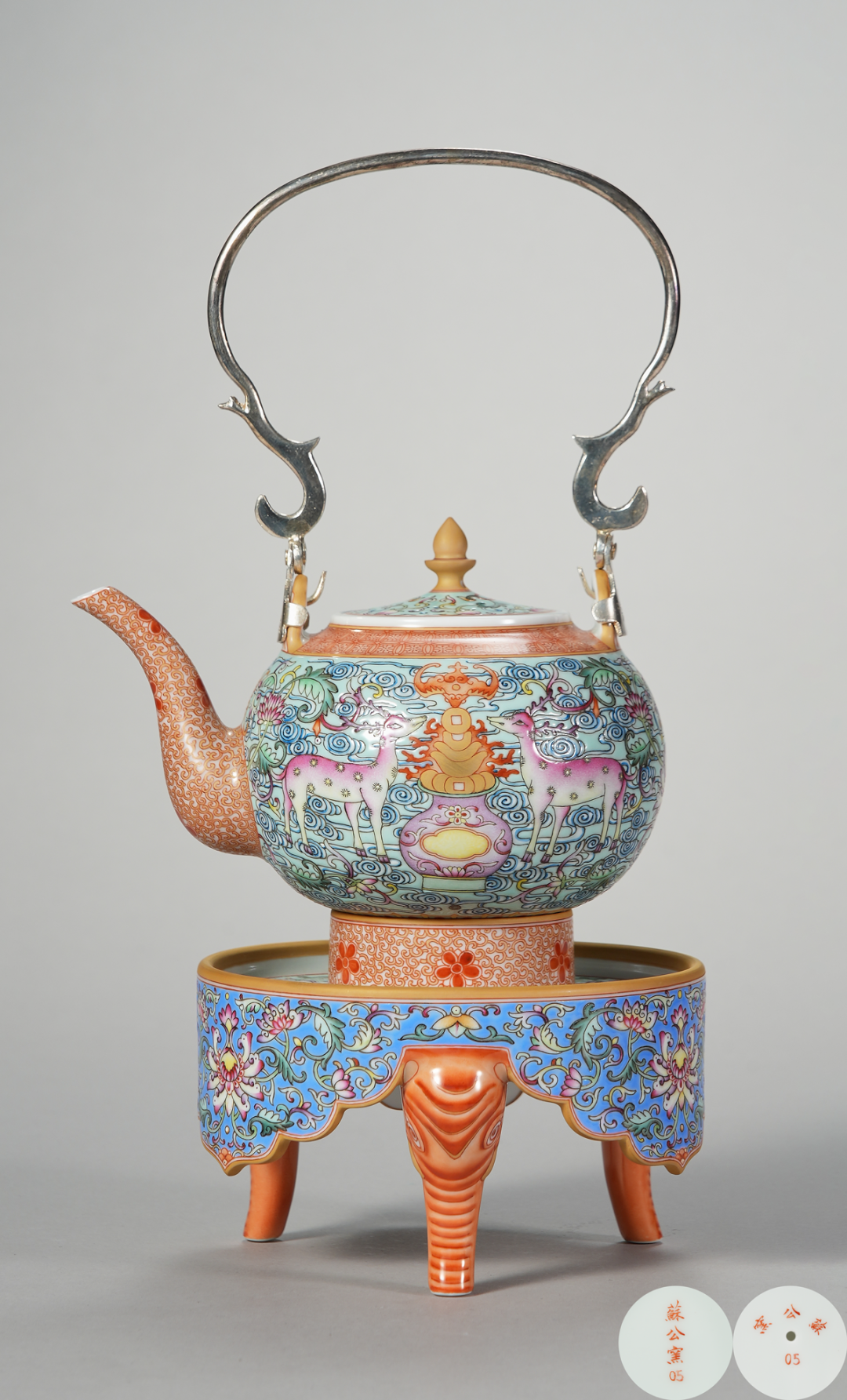 诚德轩粉彩乾坤提梁壶福禄满堂一组两件