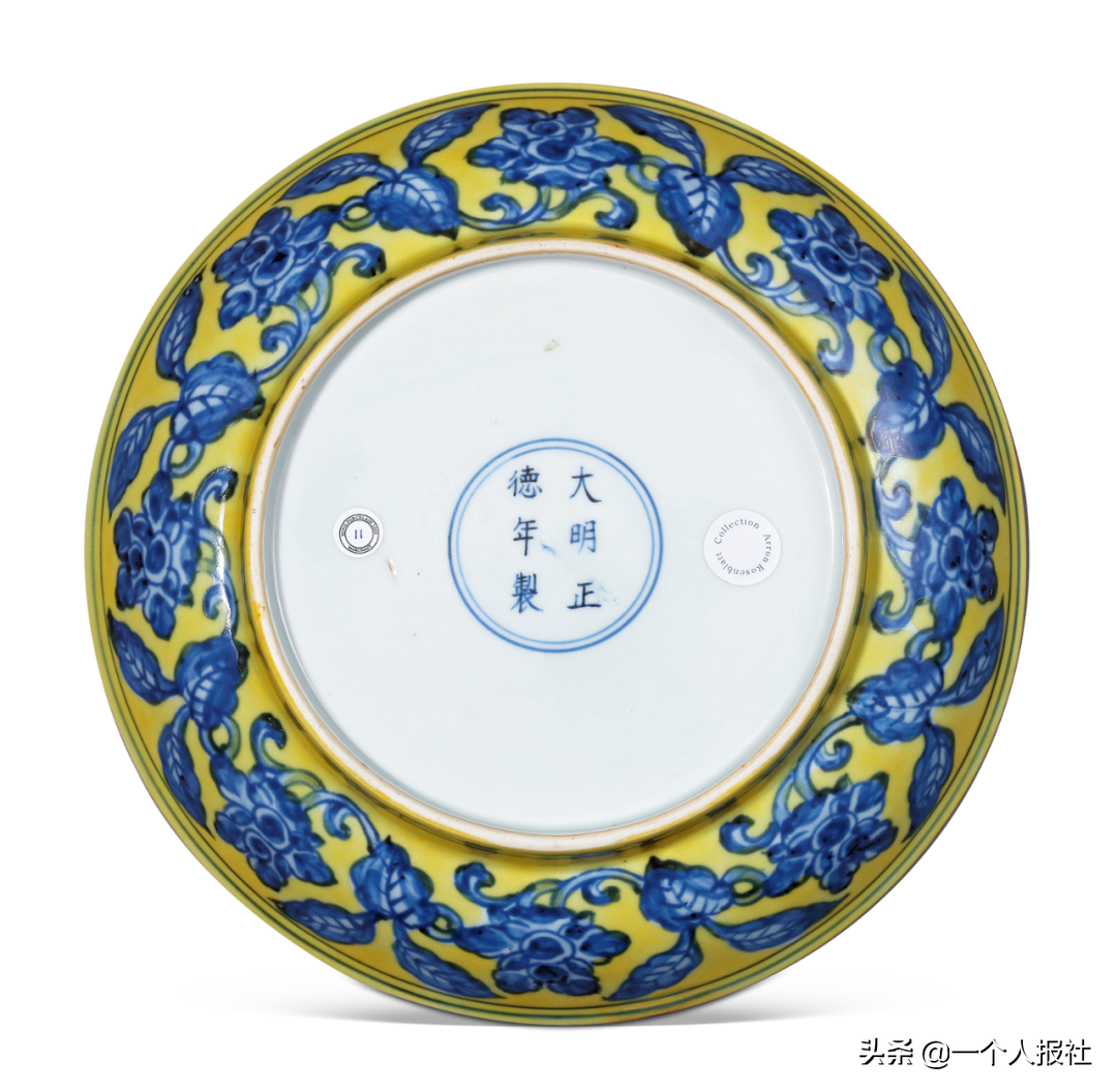 明正德黄釉地青花石榴花盘