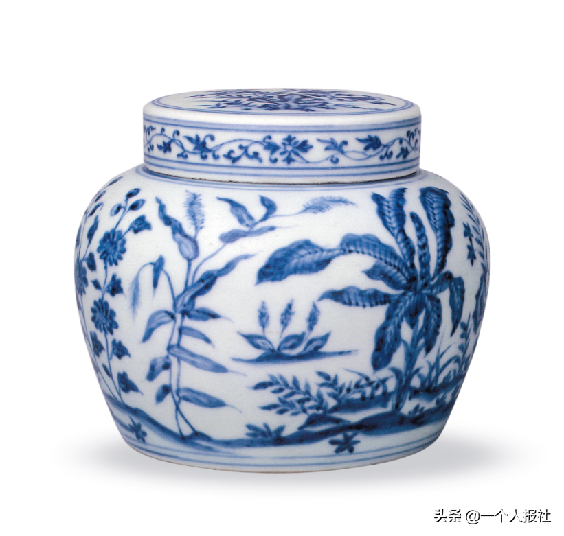 明成化青花山石花卉纹盖罐(无款,盖为后配)