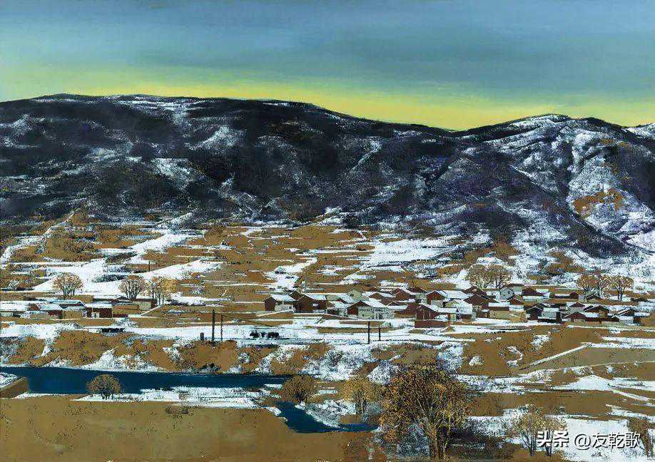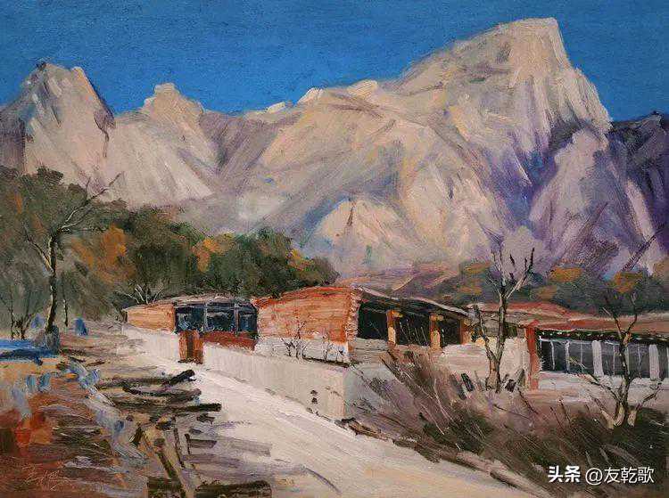 王根《闾山下的村庄》油画60x80cm2023年