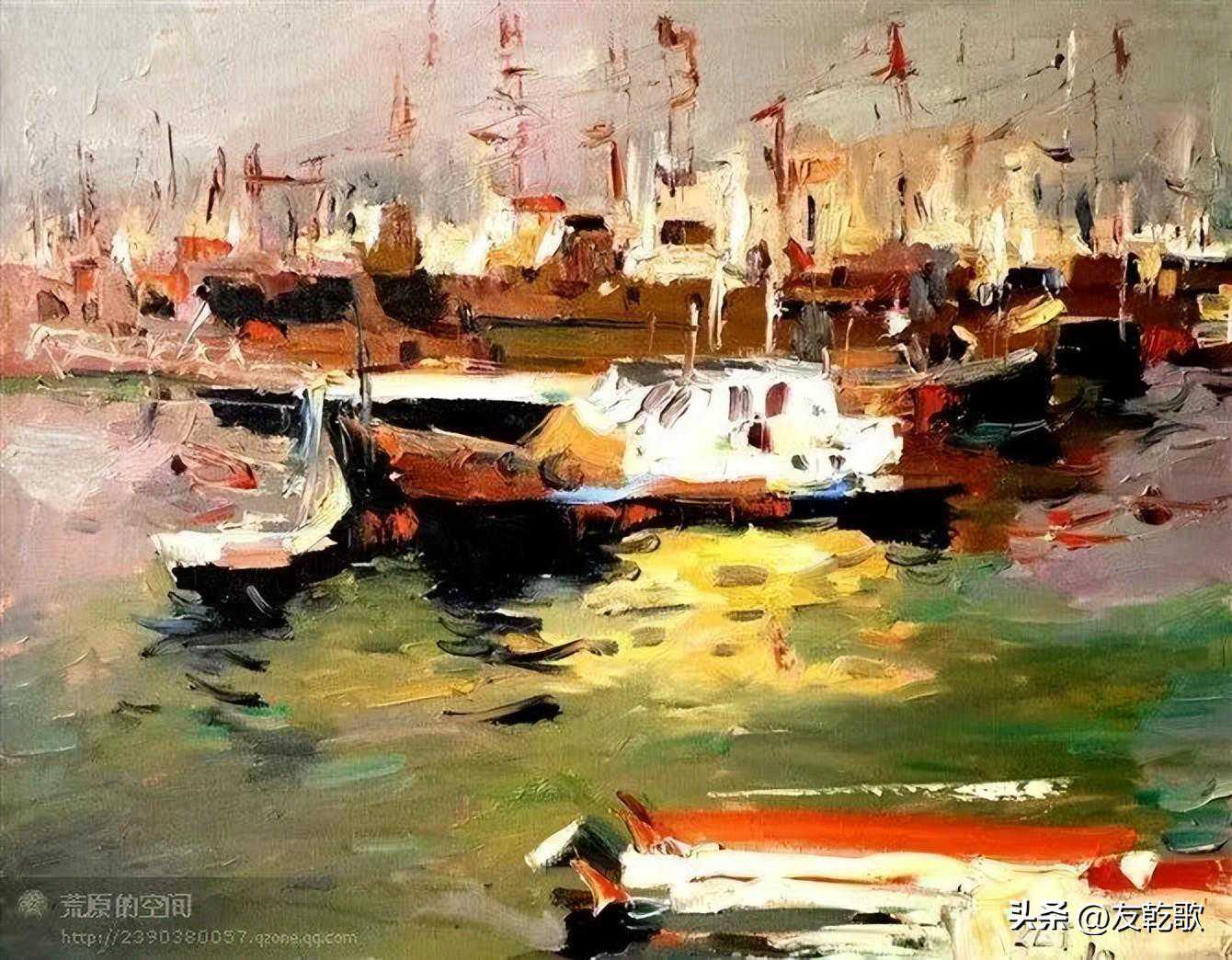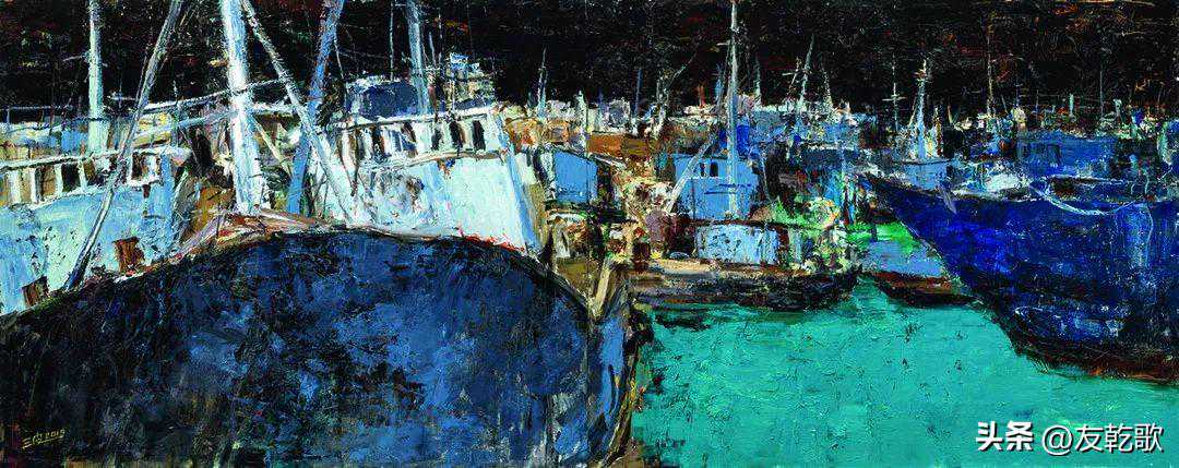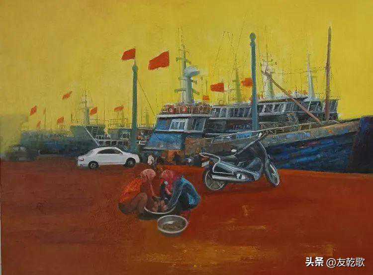 张临君《繁忙的码头》油画50X60cm