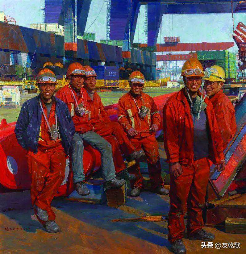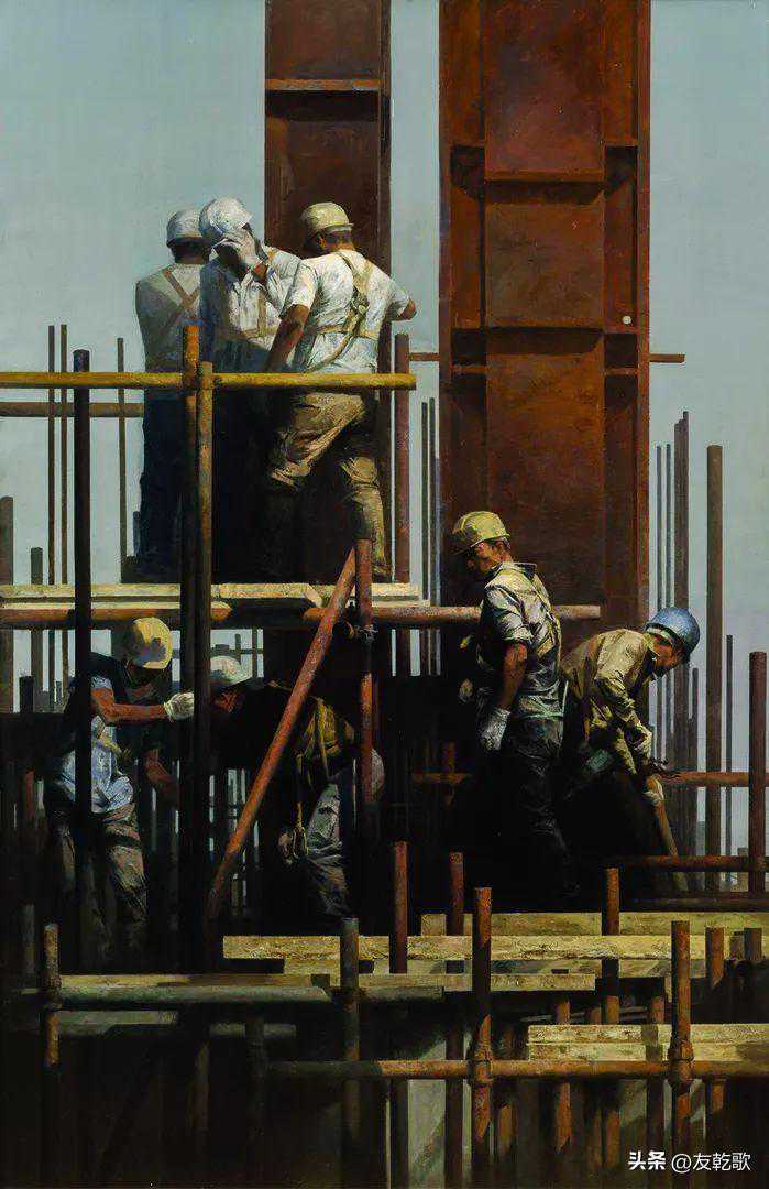 宋海永《工地上的男人们》油画180×180cm