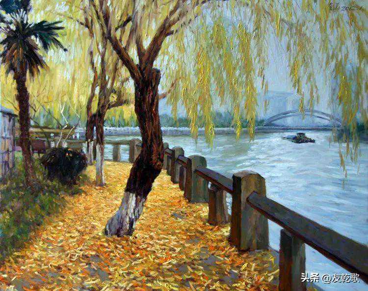 朱金华《杭州•孟冬阳光下的京杭大运河畔》油画80x1002012