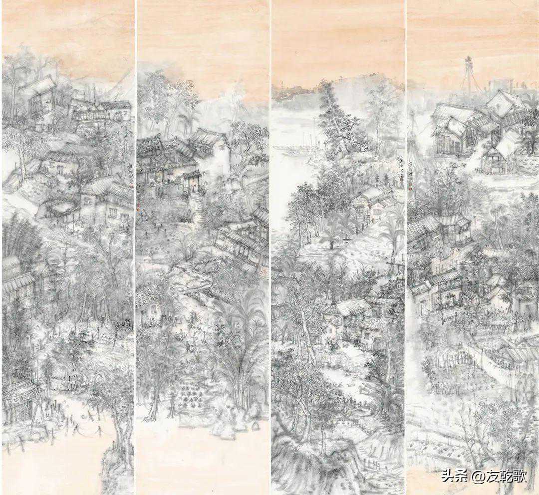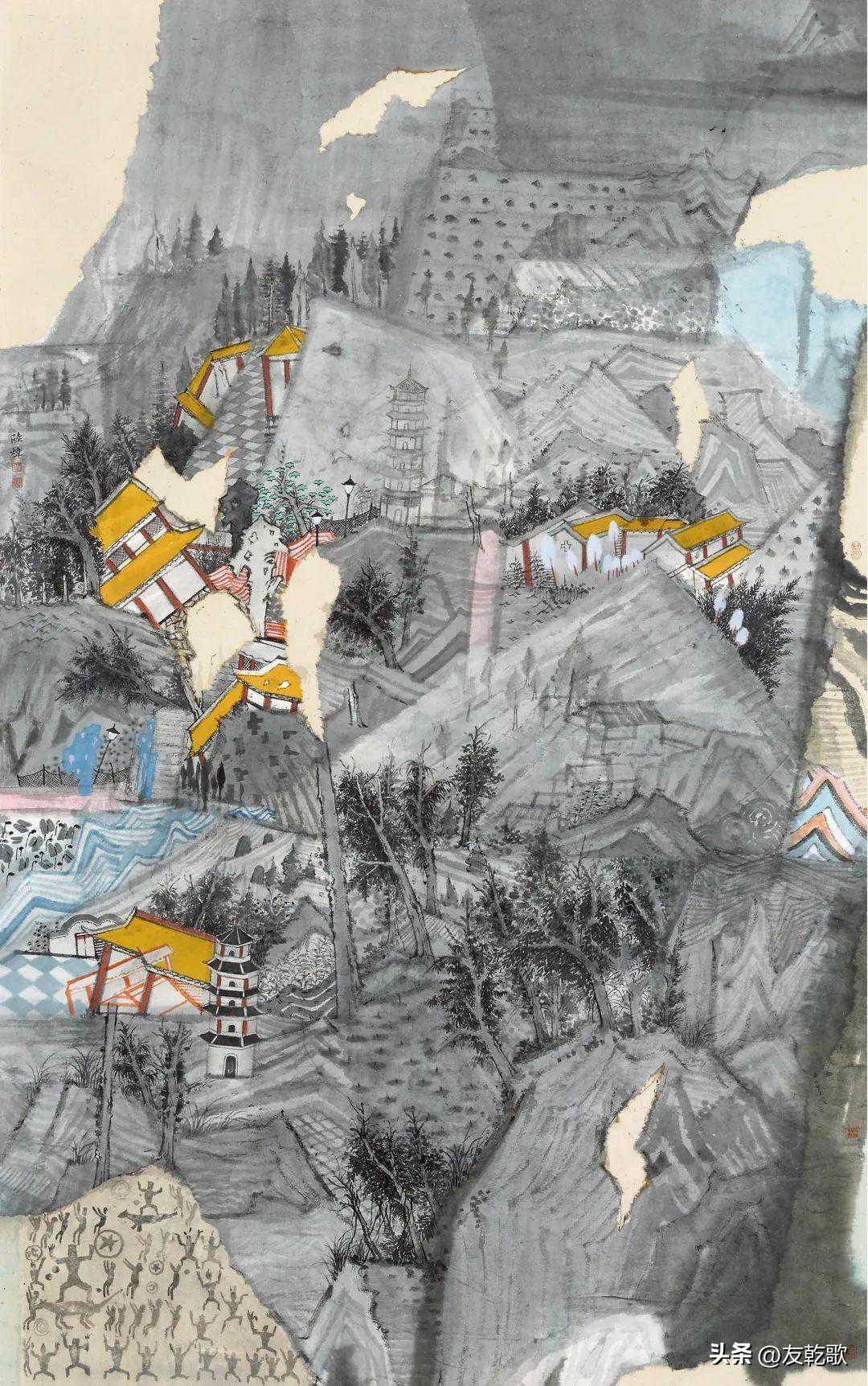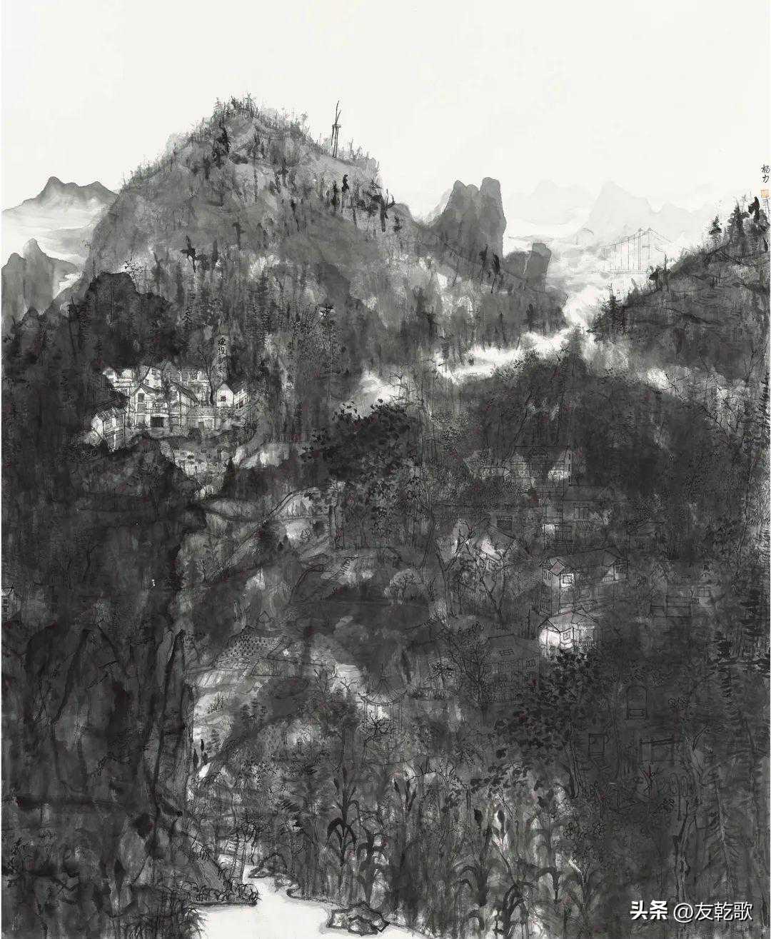 吴跃华《岩下村的变迁》中国画180×97cm