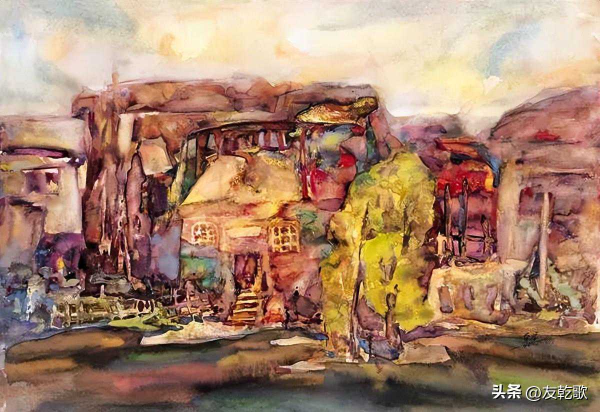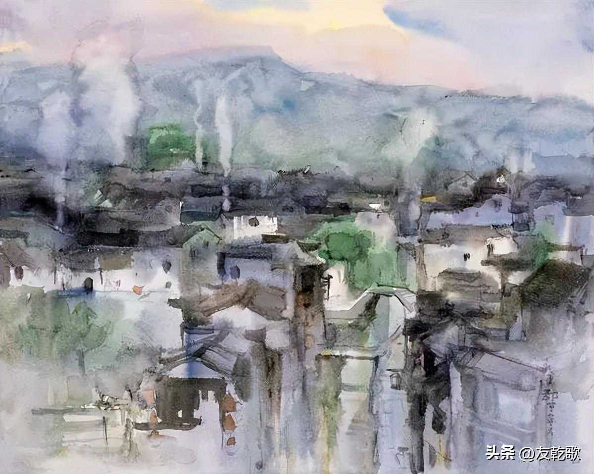 郭宁《又见炊烟》水彩53x67cm