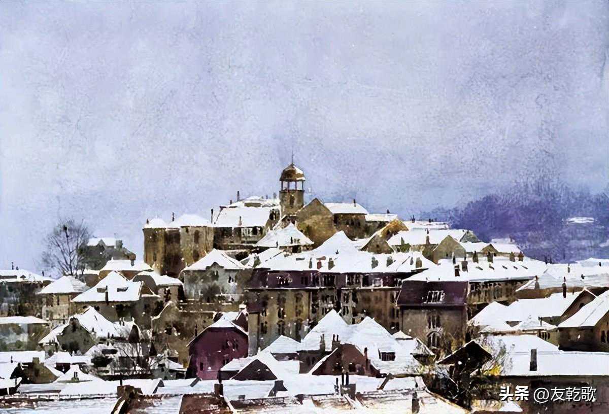 陈锡岩《岛城雪》水彩55x80cm
