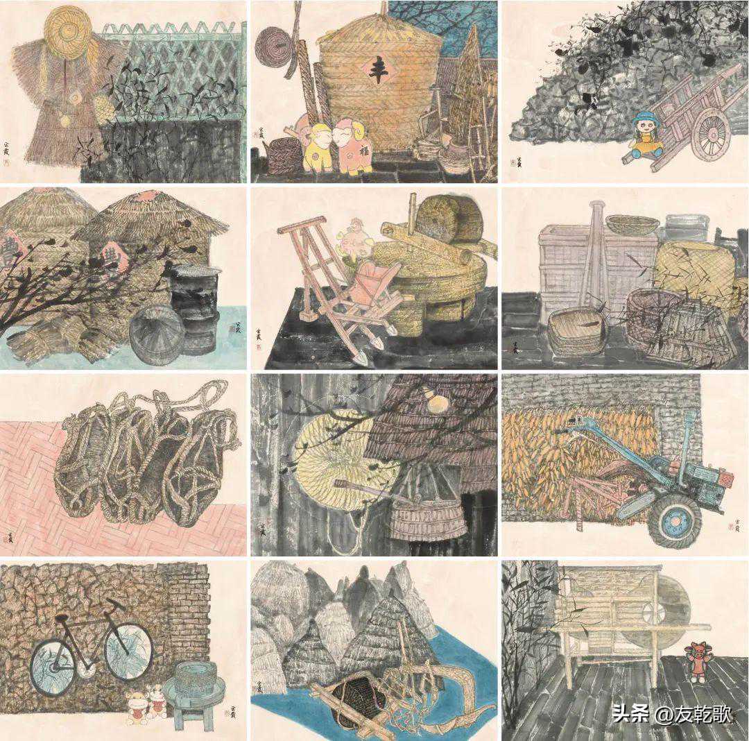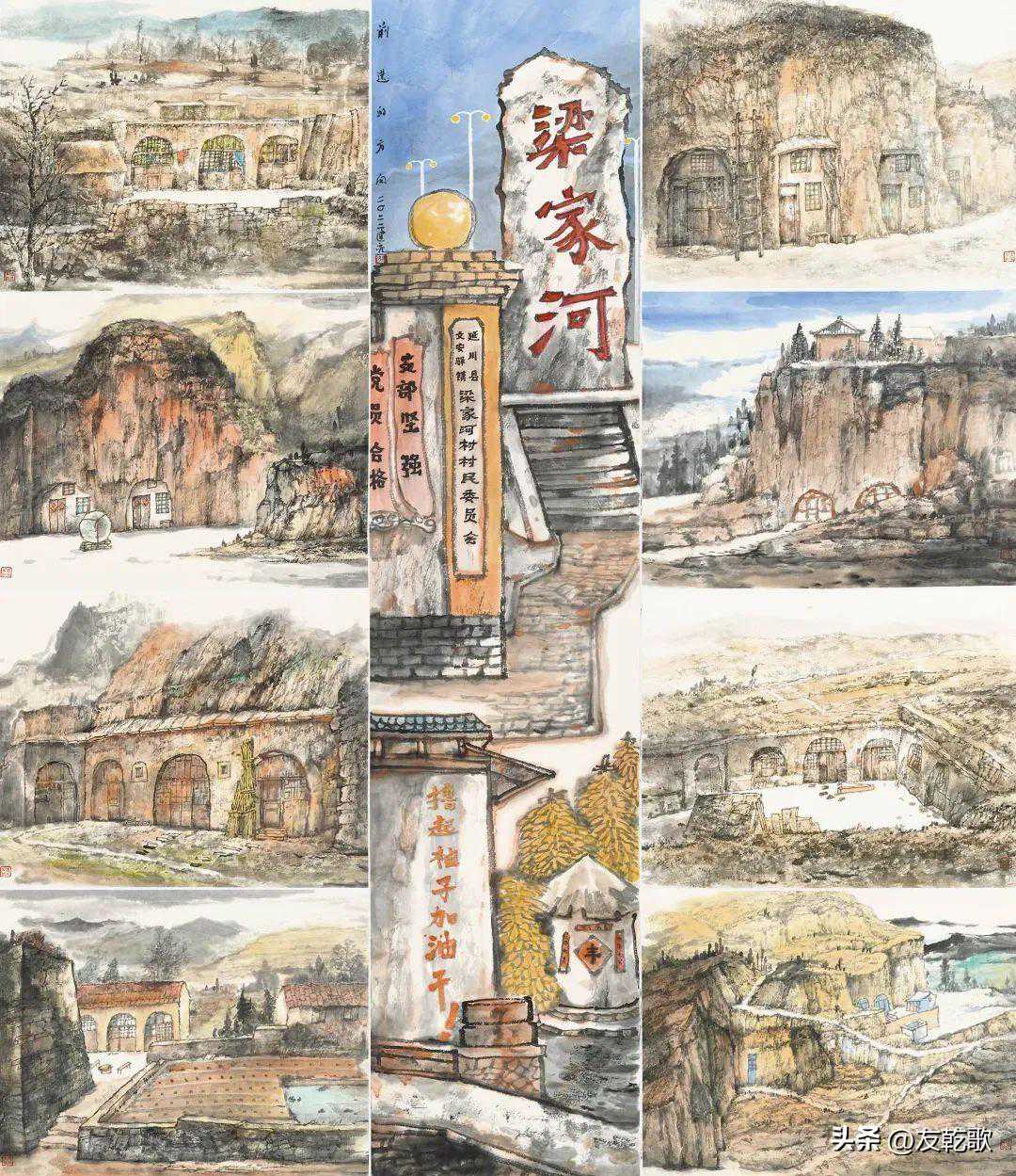 余秋明《山乡处处农家情》中国画200×200cm