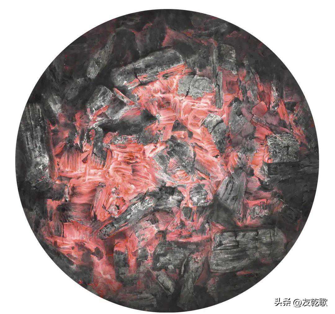 张建辉《薪火燎原》中国画直径180cm