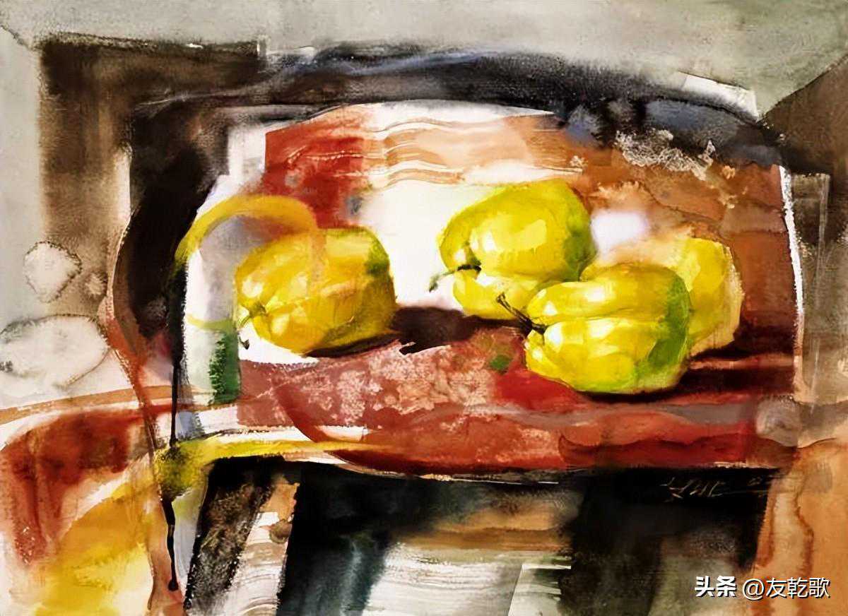 谢艾非《香梨》水彩39x54cm