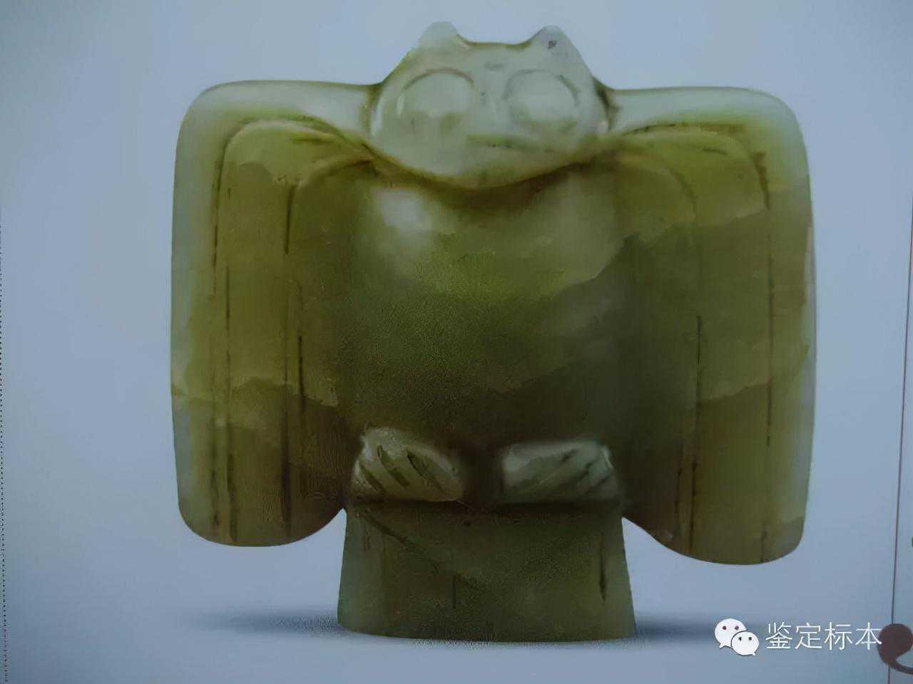 無耳為鷹,是太陽的象征,凸眼,折肩,雙爪在腹部,背部有兩個隧孔,典型紅山文化特征。