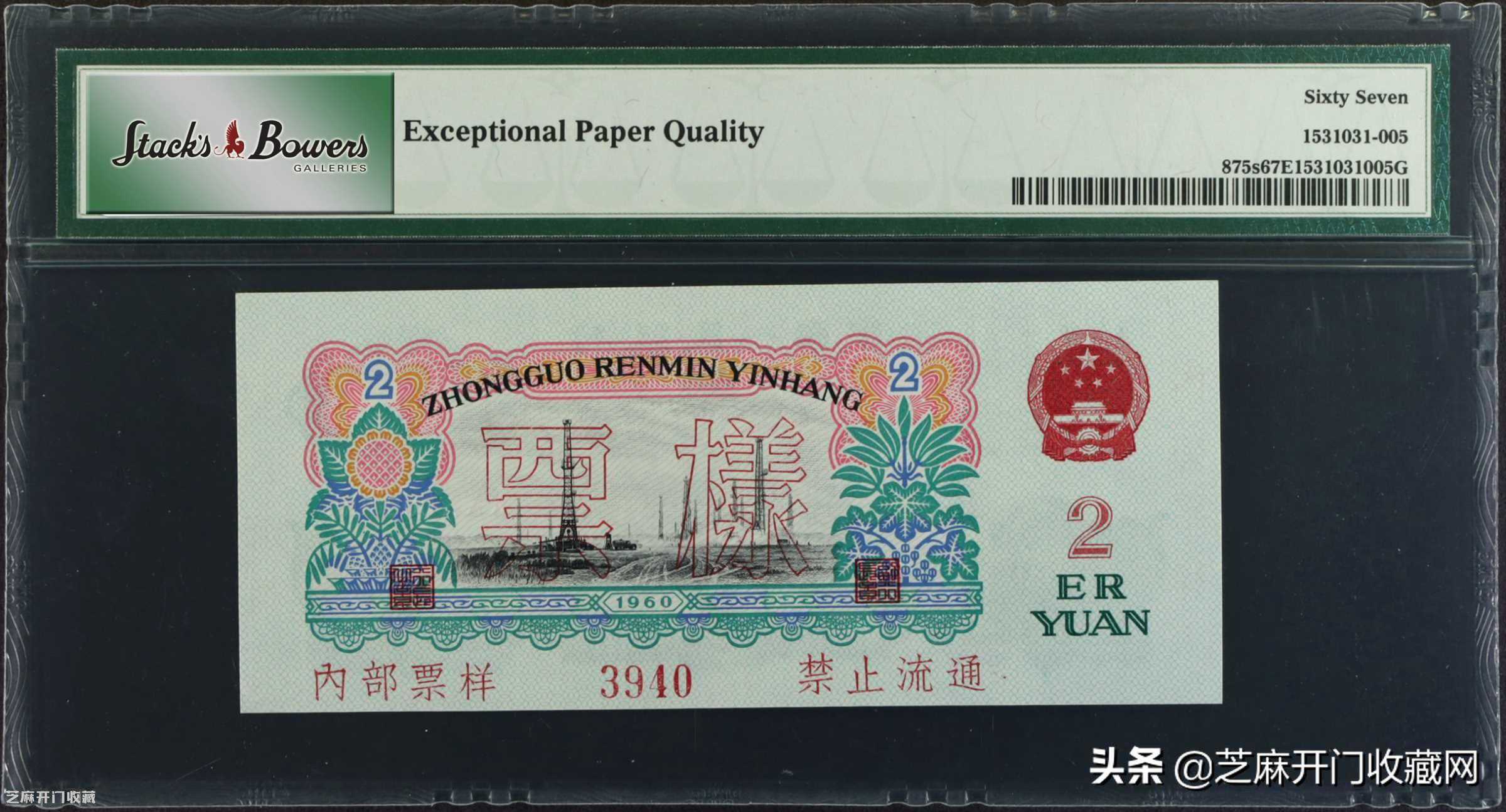 1:1960年第三版人民币贰圆。样张,估价:USD1250-1750,成交价格:USD8100