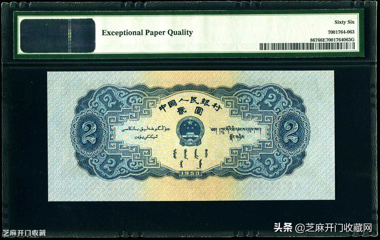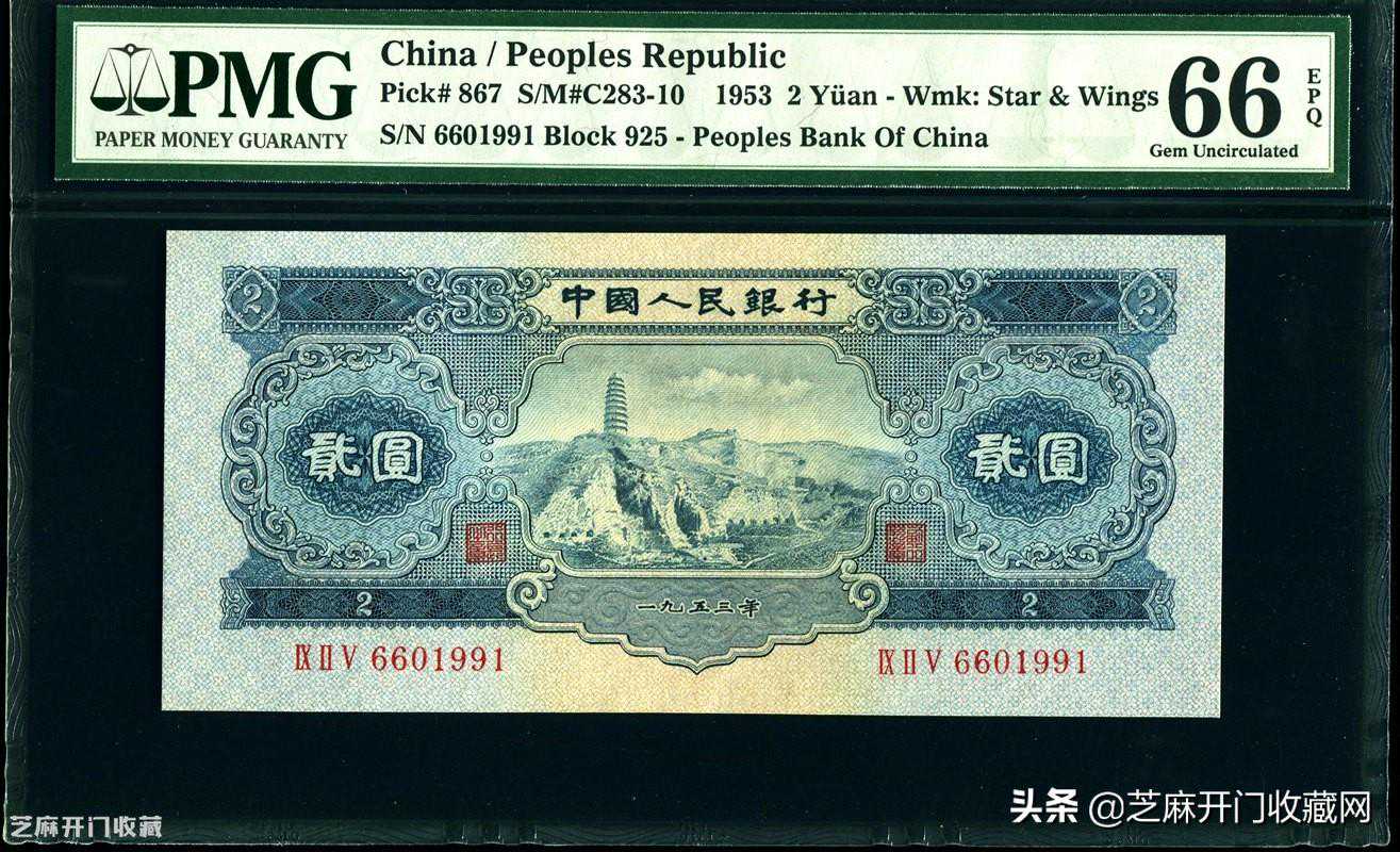 2:1953年第二版贰圆宝塔山PMGGemUnc66EPQ,估价:RMB40000-50000,成交价格:RMB49350