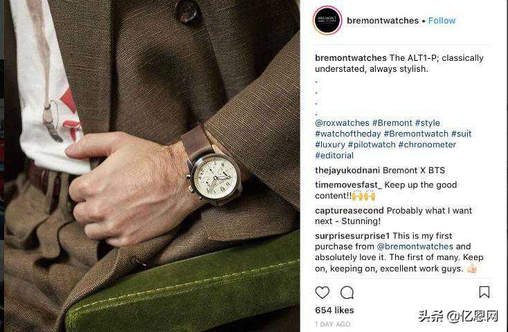 在下面的例子中,Bremont就做得很好。他们使用watchoftheday这样的标签吸引目标受众。