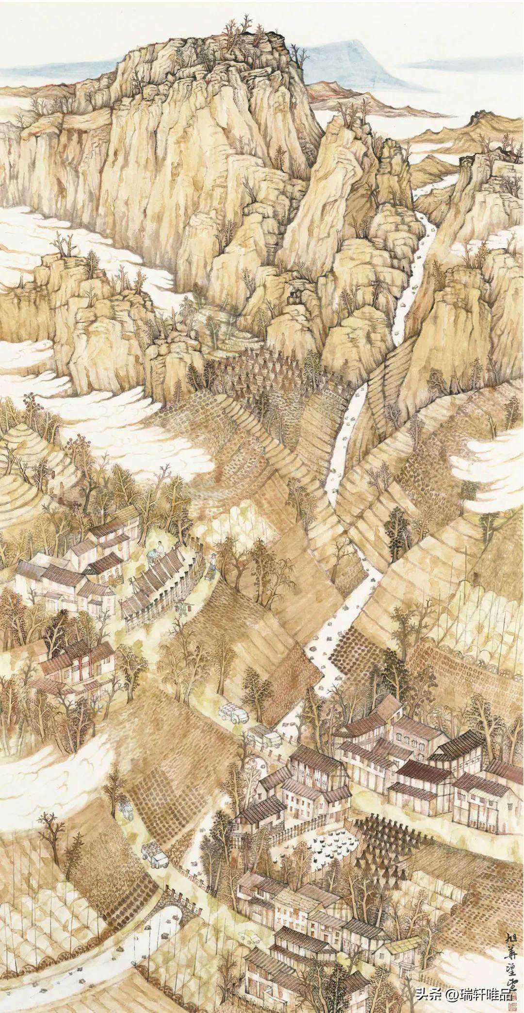裘观雪山乡春色图180cm×96cm