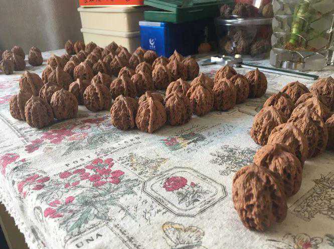 我最喜欢楸子,而我的楸子都是几十斤几十斤批发而来的,因为都是在入冬前托朋友买来的,因此,在有暖气的房子里放上一冬天,也可以算是干得差不多了,即便如此,我还是经常会把我的楸子核桃放上两个冬天才开始配对儿,我真的觉得这样才稳妥。哈,当然,这也是因为楸子太多的缘故。至于批发来的麻核桃、铁核桃,我一般都是要等到第二年的五月以后才开始配对儿,这个时候,核桃该裂的也裂了,该缩的也缩了。