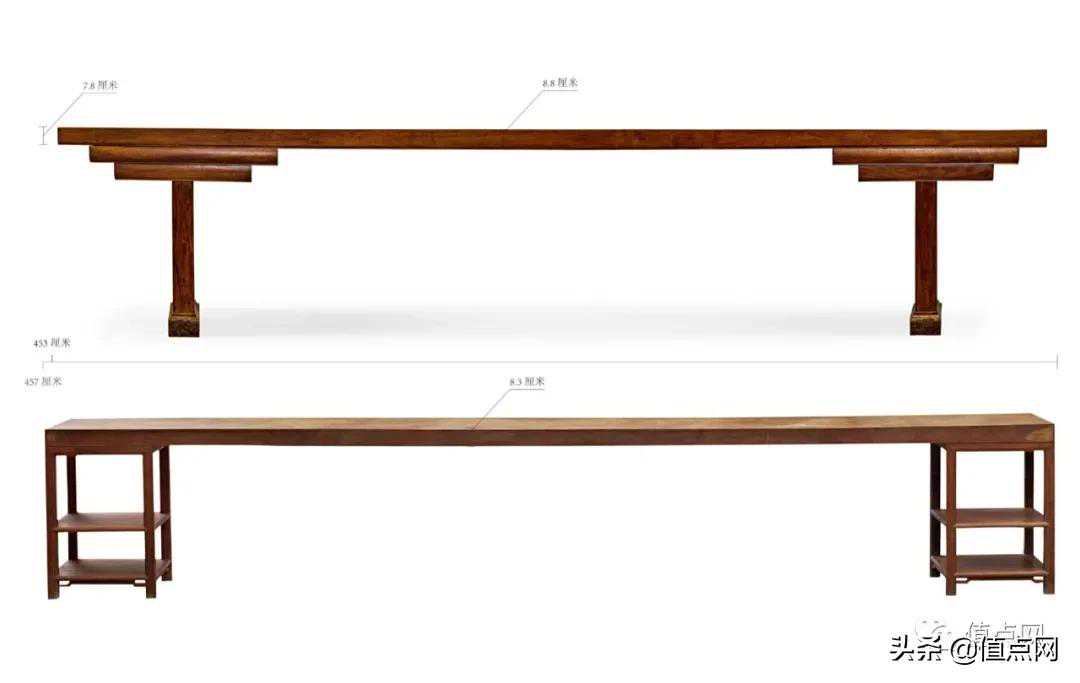 上为是次拍卖巨案,下为清宫旧藏的逾4.5米长黄花梨案