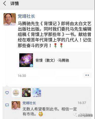 《背馍上学那些年》一书征稿启事随后发出,望有共同经历的网友们积极组稿,私信小编或者直接@马腾驰先生@驰风轩文化tch均可。