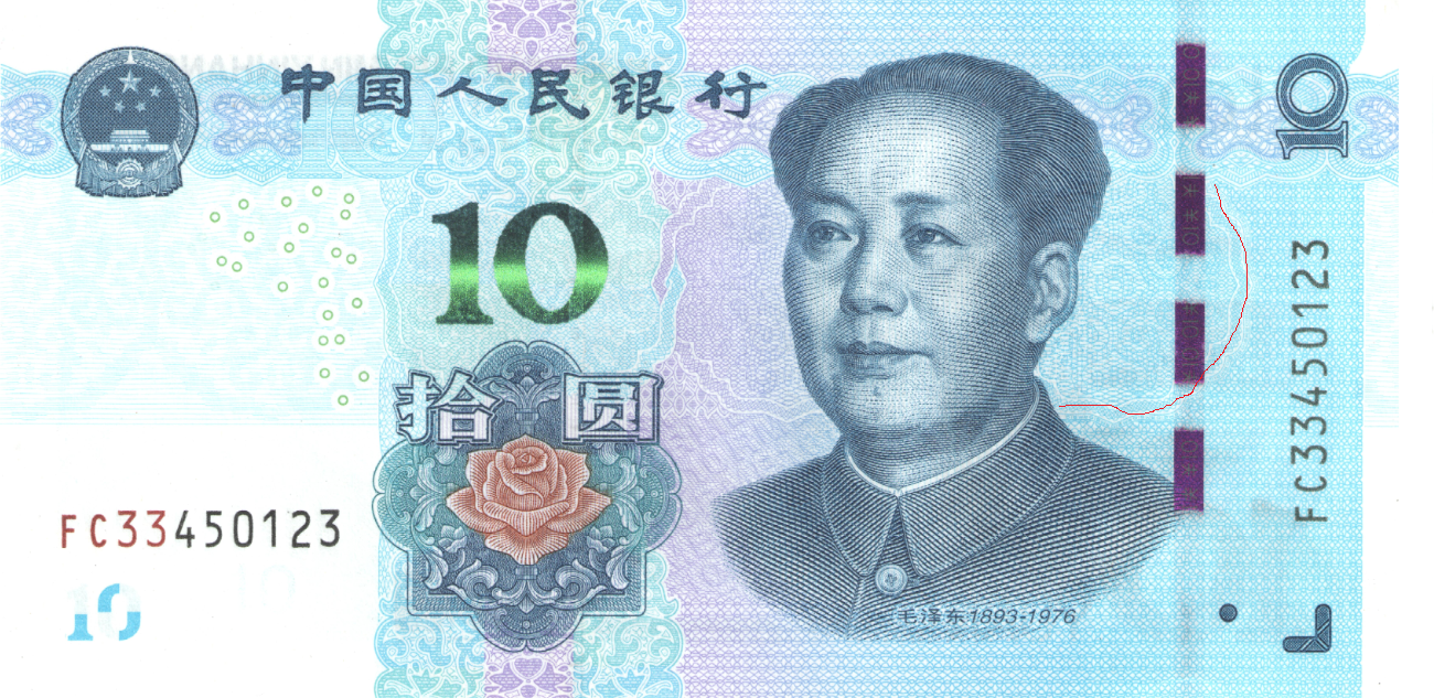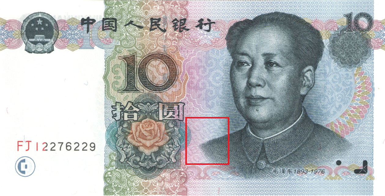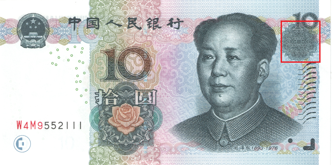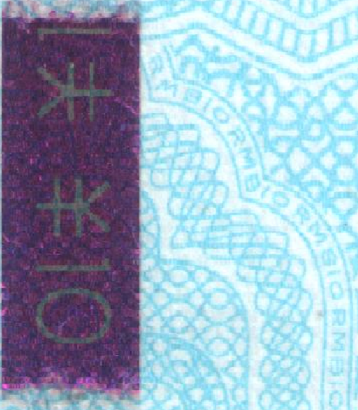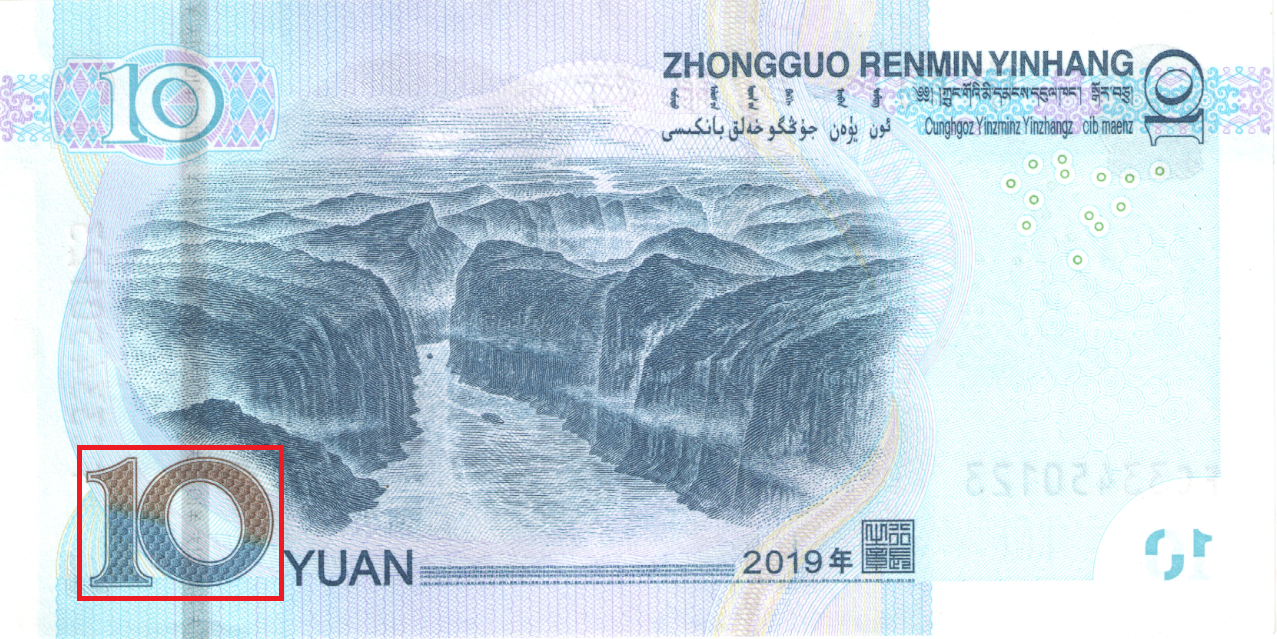 暗纹,荧光变换角度,可见RMB10